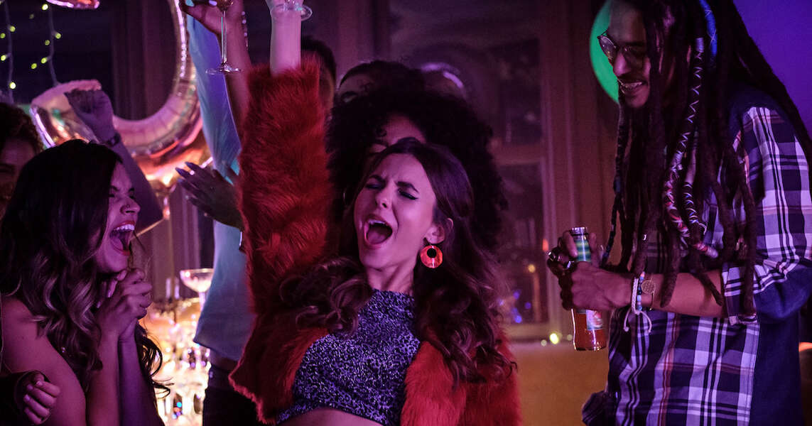 Heaven can wait for Victoria Justice in Afterlife of the Party a shrill and derivative Netflix comedy. Afterlife of the Party stars Victoria Justice as Cassie Midori Francis as Lisa Adam Garcia as Howie Gloria Garcia as Sofia Robyn Scott as Val Myfanwy Waring as Emme and Spencer Sutherland as Koop. Nu moet ze.
